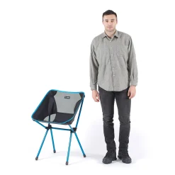 De Campingstoel Helinox Café Chair Black is een hoogwaardige, inklapbare stoel van het gerenommeerde merk Helinox. Deze stoel is uitgevoerd in een stijlvolle zwarte kleur en vervaardigd uit duurzaam polyester. De stoel maakt deel uit van de Café Chair-serie en heeft een gewicht van slechts 1,273 kg. De afmetingen van de stoel zijn 50,5 x 56 x 85 cm, terwijl de afmetingen ingeklapt zijn teruggebracht tot 62 x 19 x 12 cm. Het frame van de stoel is gemaakt van DAC Aluminum en heeft een opvallende blauwe kleur. De zithoogte bedraagt 38 cm. Deze stoel is een ideale keuze voor kampeerders die op zoek zijn naar comfort en gemak.