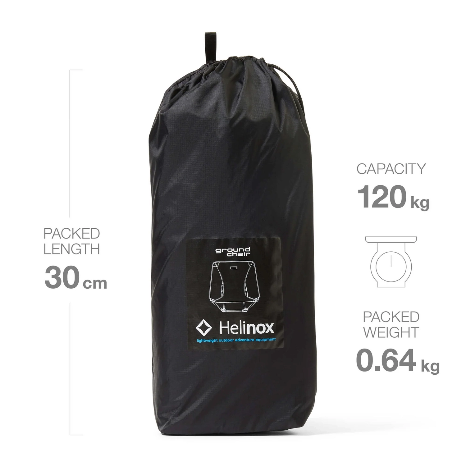 De Campingstoel Helinox Ground Chair Black is een hoogwaardige, inklapbare campingstoel van het merk Helinox. Deze stoel heeft een strakke zwarte kleur en is gemaakt van duurzaam polyester. De Ground Chair-serie is ontworpen voor kampeerders die op zoek zijn naar een stoel die lichtgewicht, compact en comfortabel is. Met een gewicht van slechts 0,615 kg en afmetingen van 50 x 54 x 49 cm is deze stoel gemakkelijk mee te nemen op reis. Het frame is gemaakt van DAC Aluminum en heeft een blauwe kleur. De zithoogte van de stoel bedraagt 12 cm en de afmetingen ingeklapt zijn 30 x 11 x 11 cm.