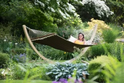 Deze fijne hangmat is afkomstig uit de Double American serie van Tropilex. De hangmat is vervaardigd van Olefin, een speciale combinatie van polyester waarbij de licht gewicht stof speciaal geschikt is voor buitengebruik. Hierdoor is de hangmat zeer sterk en duurzaam, zo gaat deze lang mee. Daarnaast zorgt de stof er voor dat de hangmat zacht en comfortabel aanvoelt. Wanneer de hangmat niet wordt gebruikt, wordt geadviseerd de hangmat op een droge plek te bewaren. De hangmat heeft een maximaal draaggewicht van 180 kg en is geschikt voor maximaal twee personen. De hangmat heeft een fijne grote oppervlakte van 210 x 120 cm, waar u heerlijk in kunt ontspannen. De hangmat wordt geleverd exclusief standaard of bevestiging set.