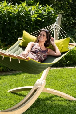 Deze fijne hangmat is afkomstig uit de Double American serie van Tropilex. De hangmat is vervaardigd van Olefin, een speciale combinatie van polyester waarbij de licht gewicht stof speciaal geschikt is voor buitengebruik. Hierdoor is de hangmat zeer sterk en duurzaam, zo gaat deze lang mee. Daarnaast zorgt de stof er voor dat de hangmat zacht en comfortabel aanvoelt. Wanneer de hangmat niet wordt gebruikt, wordt geadviseerd de hangmat op een droge plek te bewaren. De hangmat heeft een maximaal draaggewicht van 180 kg en is geschikt voor maximaal twee personen. De hangmat heeft een fijne grote oppervlakte van 210 x 120 cm, waar u heerlijk in kunt ontspannen. De hangmat wordt geleverd exclusief standaard of bevestiging set.