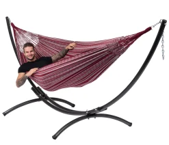 Deze Double Comfort hangmat is geschikt voor dubbel plezier en ontspanning. De hangmat is geschikt voor twee personen en is gemaakt van stevig canvas dat tegen neerslag bestand is. De stof is erg dik, zacht en comfortabel. De hangmat heeft een afmeting van 230 x 160 cm en is daarmee lekker groot. Zo past u perfect liggend of zittend met z’n tweeën op. De hangmat is voorzien van veel ophangkoorden waardoor het gewicht beter wordt verdeeld voor optimaal comfort. De Tropilex Double hangmat wordt geleverd met een bijpassende tas. Zo kunt u de hangmat gemakkelijk opbergen en meenemen. De hangmatten van Tropilex worden met liefde en zorg gemaakt in Colombia. De stof wordt geweven op speciale machines voor het beste resultaat en met de hand afgewerkt. Hierdoor zijn de hangmatten van zeer hoge kwaliteit en gaan ze jarenlang mee. Daarnaast zorgt Tropilex voor goed toezicht op de arbeidsomstandigheden in het land en vragen ze een eerlijke prijs, waardoor iedere Tropilex-hangmat bijdraagt aan de welvaart van een groeiende ontwikkelingsregio. Kortom, een comfortabele hangmat van hoge kwaliteit waarbij u ook nog eens een bewuste keuze maakt!