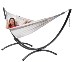 Deze Double Comfort hangmat is geschikt voor dubbel plezier en ontspanning. De hangmat is geschikt voor twee personen en is gemaakt van stevig canvas dat tegen neerslag bestand is. De stof is erg dik, zacht en comfortabel. De hangmat heeft een afmeting van 230 x 160 cm en is daarmee lekker groot. Zo past u perfect liggend of zittend met z’n tweeën op. De hangmat is voorzien van veel ophangkoorden waardoor het gewicht beter wordt verdeeld voor optimaal comfort. De Tropilex Double hangmat wordt geleverd met een bijpassende tas. Zo kunt u de hangmat gemakkelijk opbergen en meenemen. De hangmatten van Tropilex worden met liefde en zorg gemaakt in Colombia. De stof wordt geweven op speciale machines voor het beste resultaat en met de hand afgewerkt. Hierdoor zijn de hangmatten van zeer hoge kwaliteit en gaan ze jarenlang mee. Daarnaast zorgt Tropilex voor goed toezicht op de arbeidsomstandigheden in het land en vragen ze een eerlijke prijs, waardoor iedere Tropilex-hangmat bijdraagt aan de welvaart van een groeiende ontwikkelingsregio. Kortom, een comfortabele hangmat van hoge kwaliteit waarbij u ook nog eens een bewuste keuze maakt!