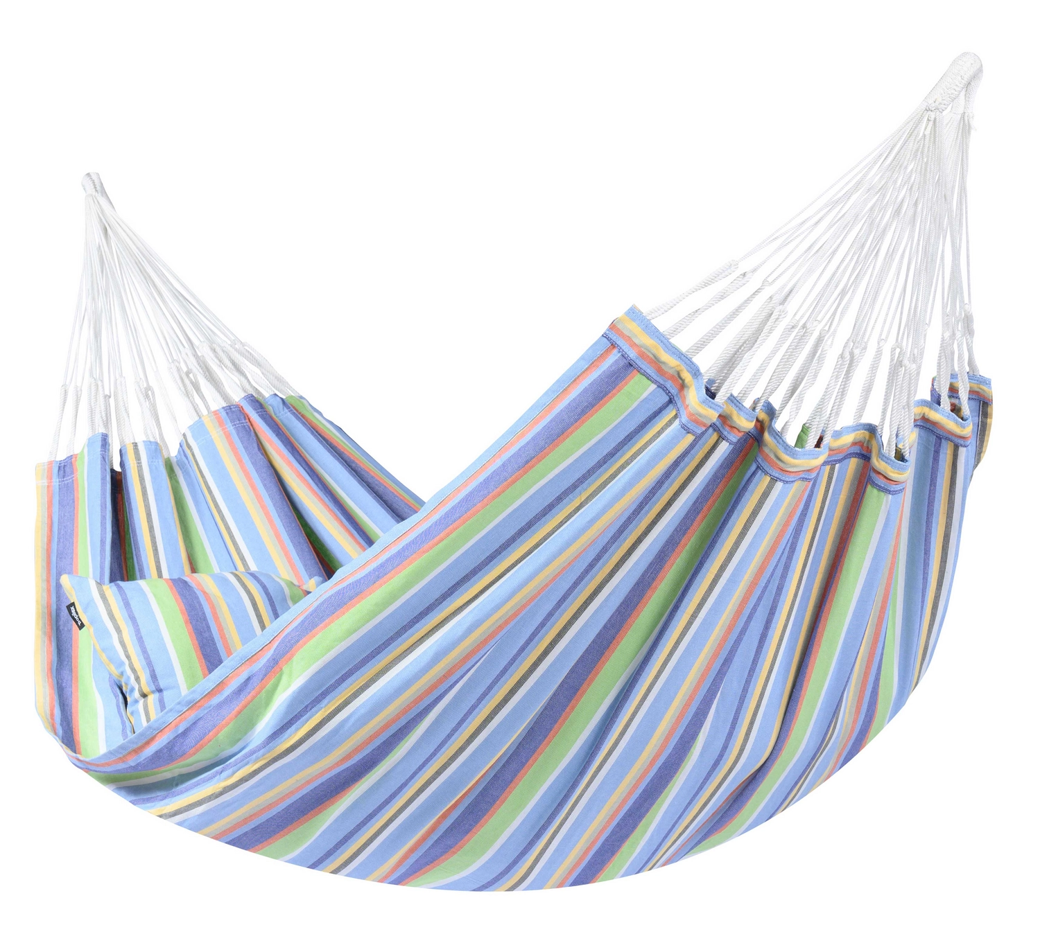 Deze fijne hangmat is afkomstig uit de Double Trinidad serie van Tropilex. De hangmat is vervaardigd van 100% Polycotton, een speciale combinatie van katoen en polyester waarbij de stof dikker is geweven. Hierdoor is de hangmat zeer sterk en duurzaam, zo gaat deze lang mee. Daarnaast zorgt de stof er voor dat de hangmat zacht en comfortabel aanvoelt. De stof is tevens geschikt tegen een lichte regenbui, wanneer de hangmat niet wordt gebruikt, wordt geadviseerd de hangmat op een droge plek te bewaren. De hangmat heeft een maximaal draaggewicht van 180 kg en is geschikt voor maximaal twee personen. De hangmat heeft een fijne grote oppervlakte van 230 x 160 cm, waar u heerlijk in kunt ontspannen. De hangmat wordt geleverd exclusief standaard of bevestiging set.