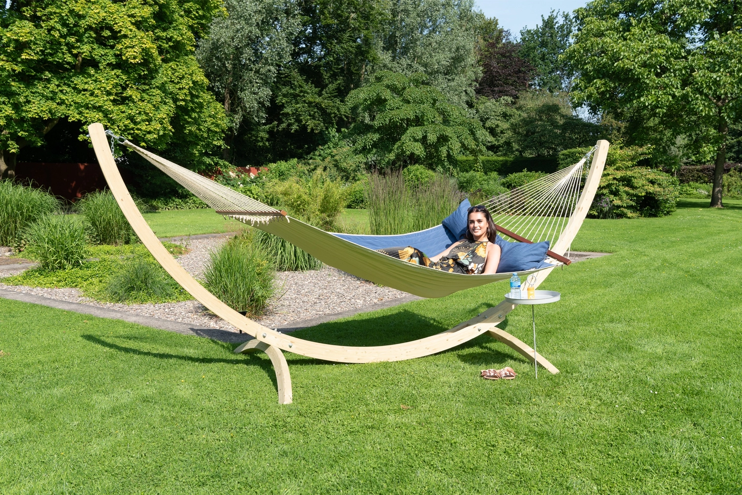 Deze fijne hangmat is afkomstig uit de Family Vegas serie van Tropilex. De hangmat is vervaardigd van Olefin, een speciale combinatie van polyester waarbij de licht gewicht stof speciaal geschikt is voor buitengebruik. Hierdoor is de hangmat zeer sterk en duurzaam, zo gaat deze lang mee. Daarnaast zorgt de stof er voor dat de hangmat zacht en comfortabel aanvoelt. Wanneer de hangmat niet wordt gebruikt, wordt geadviseerd de hangmat op een droge plek te bewaren. De hangmat heeft een maximaal draaggewicht van 180 kg en is geschikt voor maximaal twee personen. De hangmat heeft een fijne grote oppervlakte van 210 x 140 cm, waar u heerlijk in kunt ontspannen. De hangmat wordt geleverd exclusief standaard of bevestiging set.