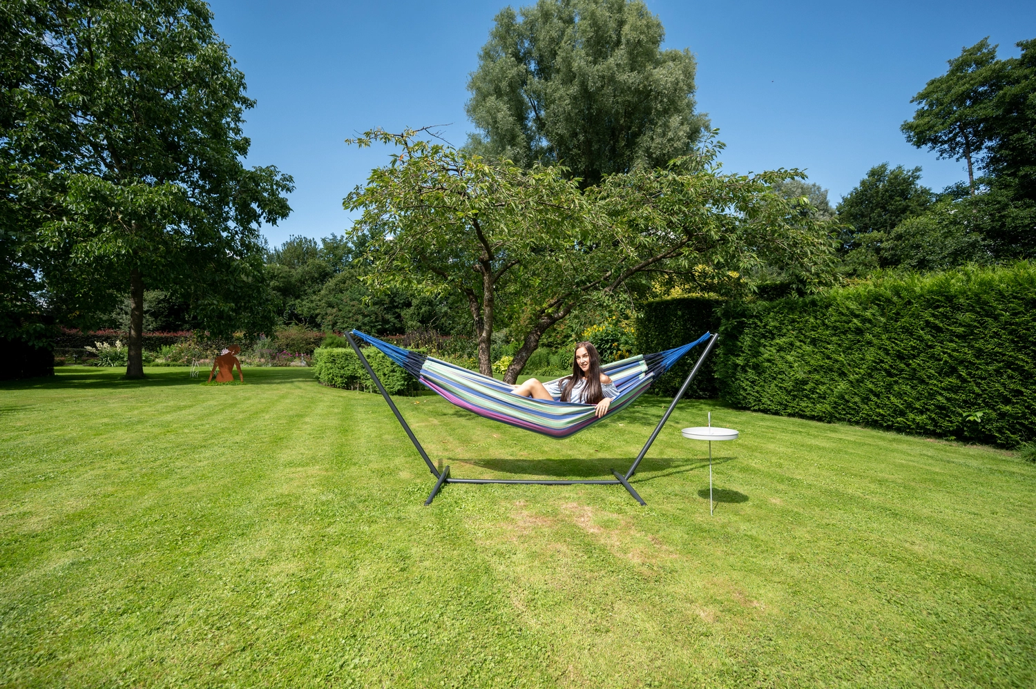 Deze fijne hangmat is afkomstig uit de Single Cuba serie van Tropilex. De hangmat is vervaardigd van 100% Polycotton, een speciale combinatie van katoen en polyester waarbij de stof dikker is geweven. Hierdoor is de hangmat zeer sterk en duurzaam, zo gaat deze lang mee. Daarnaast zorgt de stof er voor dat de hangmat zacht en comfortabel aanvoelt. De stof is tevens geschikt tegen een lichte regenbui, wanneer de hangmat niet wordt gebruikt, wordt geadviseerd de hangmat op een droge plek te bewaren. De hangmat heeft een maximaal draaggewicht van 120 kg en is geschikt voor maximaal één persoon. De hangmat heeft een fijne grote oppervlakte van 200 x 140 cm, waar u heerlijk in kunt ontspannen. De hangmat wordt geleverd exclusief standaard of bevestiging set.