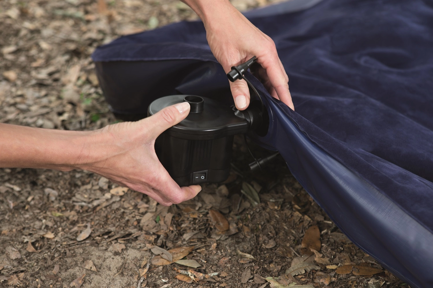 Dit handige luchtbed is van het merk Pavillo. Het luchtbed is voorzien van een ingebouwd hoofdkussen, waardoor u geen ruimte hoeft te verspillen door er zelf eentje mee te nemen. Daarnaast heeft het luchtbed een ingebouwde voetpomp, waardoor u ook daarmee ruimte bespaard. Verder ligt het luchtbed heerlijk zacht vanwege zijn flocklaag aan de bovenkant. Als laatste wordt er een reparatie patch meegegeven, voor het geval dat.