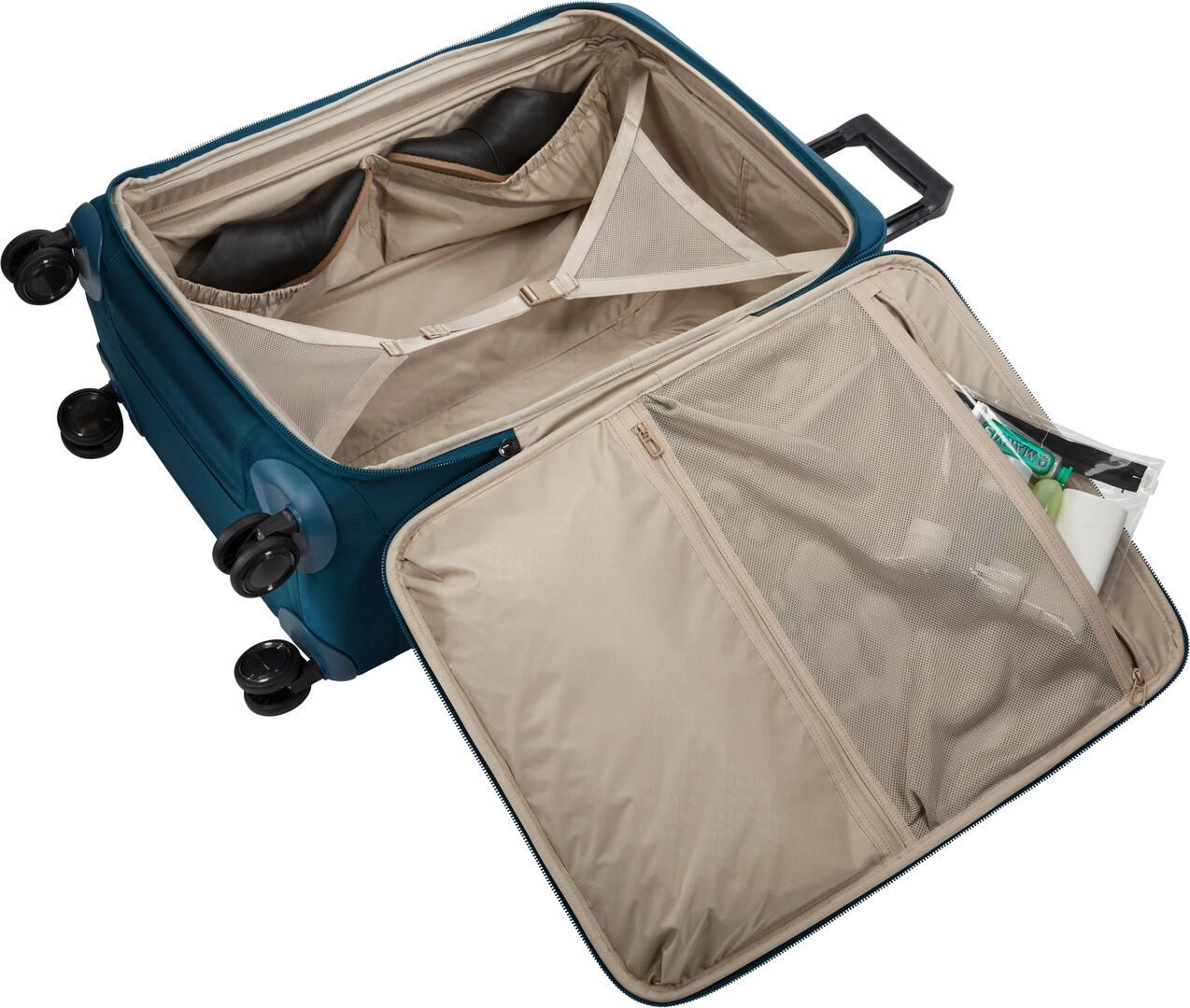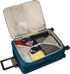 De Spira Spinner 68/27 Inch Legion Blue is een hoogwaardige reiskoffer van het gerenommeerde merk Thule. De koffer is gemaakt van duurzaam polyester en heeft een inhoud van 78 liter. Met een gewicht van slechts 3.8 kg is deze koffer licht en gemakkelijk te vervoeren. De koffer is voorzien van spanbanden en een handige opening in het voorpaneel, waardoor u uw bagage gemakkelijk kunt inpakken. Bovendien is de koffer uitbreidbaar voor meer pakruimte en heeft het een geïntegreerd TSA slot. Het aangepaste wielensysteem met 8 spinners zorgt voor soepele mobiliteit, terwijl de telescopische handgreep en V-kanaal trolleysysteem het dragen comfortabel maken. De koffer heeft hoekbescherming en stootrails om onnodige schade te voorkomen en is voorzien van extra handgrepen aan de bovenkant, zijkanten en onderkant. Deze koffer is geschikt voor zowel dames als heren en is perfect voor uw volgende reis.