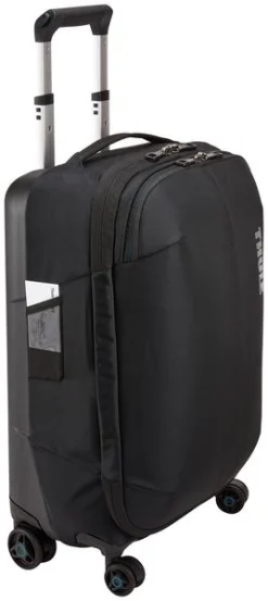 De Thule Subterra Carry-On Spinner Black is een hoogwaardige reiskoffer van het gerenommeerde merk Thule. Met een inhoud van 33 liter en afmetingen van 23 x 35 x 55 cm biedt deze koffer voldoende ruimte voor uw reisbenodigdheden. Het materiaal van de koffer is nylon, waardoor deze waterbestendig en makkelijk schoon te maken is. De koffer beschikt over een compressiepaneel binnenin, stevige grote wielen en telescopische V-Tubing handgrepen. Daarnaast is er een gaasvlak met ritssluiting voor kleine spullen en een vakje voor ID voor gemakkelijke herkenning van uw tas. De Thule Subterra Carry-On Spinner Black is een duurzame en praktische keuze voor uw volgende reis.