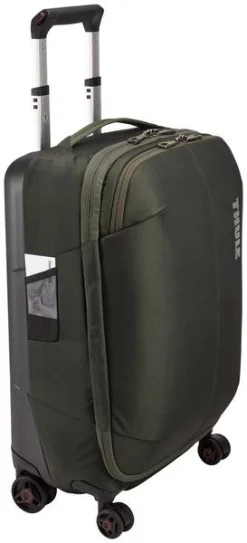 De Thule Subterra Carry-On Spinner Forest is een hoogwaardige reiskoffer van het gerenommeerde merk Thule. Met een inhoud van 33 liter en afmetingen van 23 x 35 x 55 cm biedt deze koffer voldoende ruimte voor uw reisbenodigdheden. Het materiaal van de koffer is nylon, waardoor deze waterbestendig en makkelijk schoon te maken is. De koffer beschikt over een compressiepaneel binnenin, stevige grote wielen en telescopische V-Tubing handgrepen. Daarnaast is er een gaasvlak met ritssluiting voor kleine spullen en een vakje voor ID voor gemakkelijke herkenning van uw tas. De Thule Subterra Carry-On Spinner Forest is een duurzame en praktische keuze voor uw volgende reis.