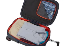 Deze 3-in-1 reiskoffer van Thule is de Subterra Luggage en dit model is zowel een rolkoffer, als reiskoffer als een combinatie van beide. Deze set bestaat uit een koffer en een rolkoffer die beide als handbagage te gebruiken zijn en gecombineerd kunnen worden tot een grotere rolkoffer die als ruimbagage ideaal is. Deze grote koffer bestaat uit een erg ruim hoofdvak waarin u erg veel spullen kwijt kunt. Om te zorgen dat vieze en schone spullen niet snel door elkaar kunnen raken heeft deze koffer een speciaal vak voor vieze kleding. Deze koffer is eenvoudig te verplaatsen dankzij de grote wielen en het extra verstevigde v-vormige telescoop handvat. Het bijzonder vormgegeven exoskelet wat aan de buitenzijde van de tas zit zorgt dat klappen goed opgevangen worden zodat de tas nog beter tegen een ruwe behandeling tijdens het reizen kan.