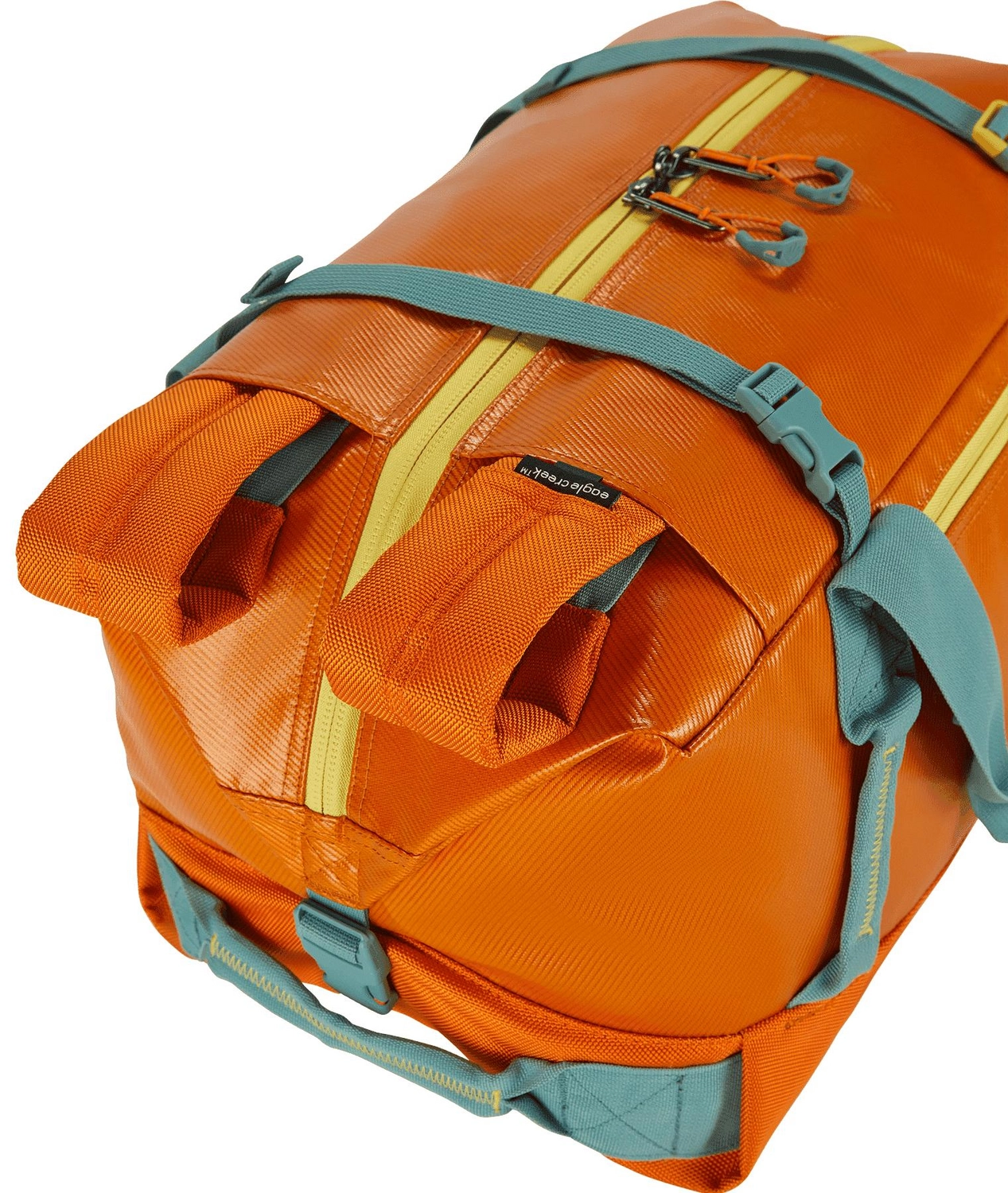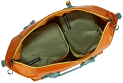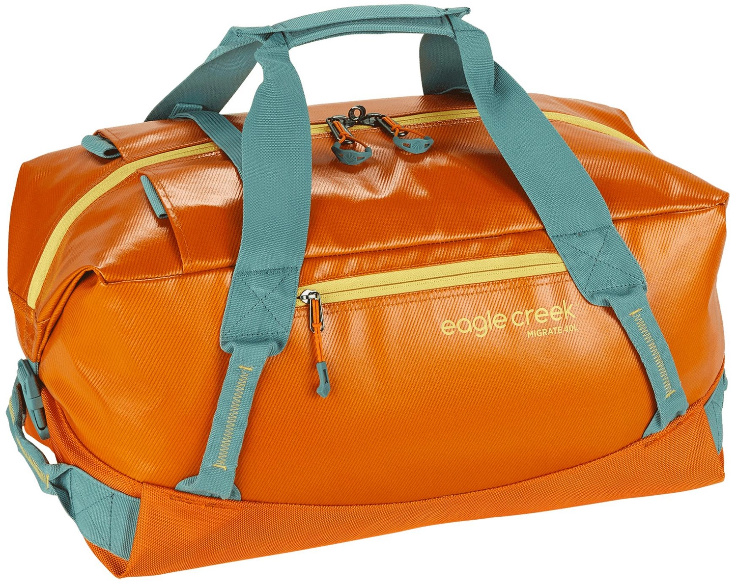 Deze reistas komt uit de serie Migrate duffel van het merk Eagle Creek. De reistas heeft een uitgebreide capaciteit van 44 liter en bevat een grote opening met een interne stormflap. De zijgespen kunnen ontgrendeld worden om nog een extra 5 liter vrij te geven. Externe compressieriemen houden de uitrusting op hun plek en de versterkte handgrepen dienen ook als bevestiginglocaties. De bodem is gemaakt van kunststof van voorruiten uit stortplaatsen. Deze bevat een naadloze bodembadconstructie zodat wanneer u de tas in een plas neerzet er geen water binnen komt. De reistas is om te toveren tot een backpack door de rugzakriemen los te maken. De tas is voorzien van een voorvak met ritssluiting en is compact op te vouwen voor opslag. De ritssluiting bevat grote lussen zodat deze ook met handschoenen aan gemakkelijk open gemaakt kan worden.