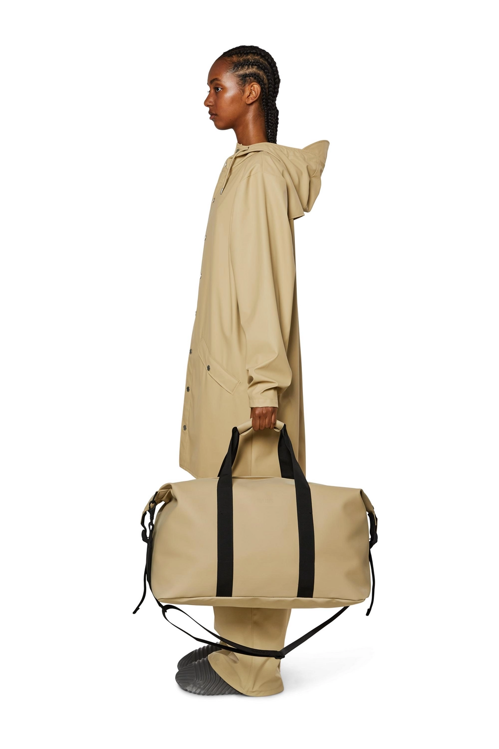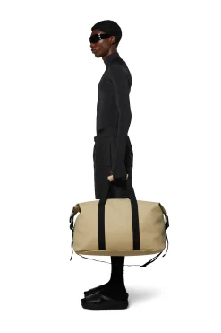 Dit is de perfecte weekendtas afkomstig uit de serie Weekend Bag van het topmerk Rains. Het is Rains’ interpretatie van een hedendaagse sporttas of overnachtingstas. Deze handige tas van Rains heeft één hoofdvak, geweven handgrepen, een afneembare schouderriem en verstelbare vergrendelingsgespen aan de zijkanten. De reistas is gemaakt van Rains’ kenmerkende waterdichte PU-gecoate stof. Deze waterdichte tas is afgewerkt met gecoate rits en matte afwerking.