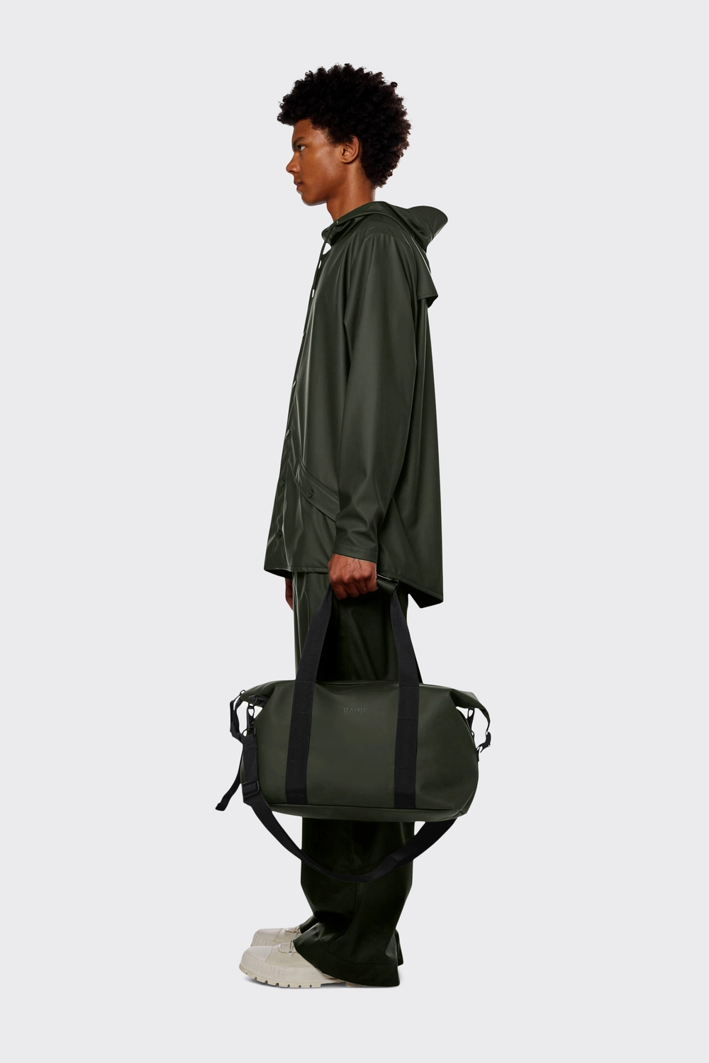 De Weekend Bag Small is Rains’ interpretatie van een eigentijdse gym- of weekendtas. Deze essentiële tas van Rains heeft één hoofdcompartiment, geweven draagriemen, een afneembare schouderband en in lengte verstelbare gespsluitingen aan de zijkanten. De Weekend Bag Small is gemaakt van de kenmerkende waterdichte PU-gecoate stof van Rains. Deze waterdichte duffelbag is afgewerkt met een gecoate ritssluiting en matte hardware.