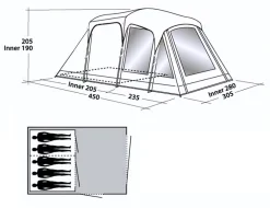 De Richmond 500 is een tent van het merk Easy Camp. De tent heeft een capaciteit voor vijf personen verdeeld over twee ruimtes met eigen ingang. De tent bijna twee meter hoog, waardoor bijna iedereen binnen in de tent rechtop kan staan. De tent is gemaakt van hoogwaardig polyester; hetgeen geen vlam vat bij vuur en een waterkolom van 3.000 mm heeft. Hierdoor blijft u lekker droog, tijdens een regenbui. De naden zijn getapte, waardoor ook daar geen regen naar binnen sijpelt. De tent heeft een vast grondzeil met stroomkabel aansluiting en is verder voorzien van de nodige ventilatie mogelijkheden. Als laatste is de tent snel en eenvoudig op te zetten en af te breken door zijn voor gemonteerde tentstokken met drukknop.